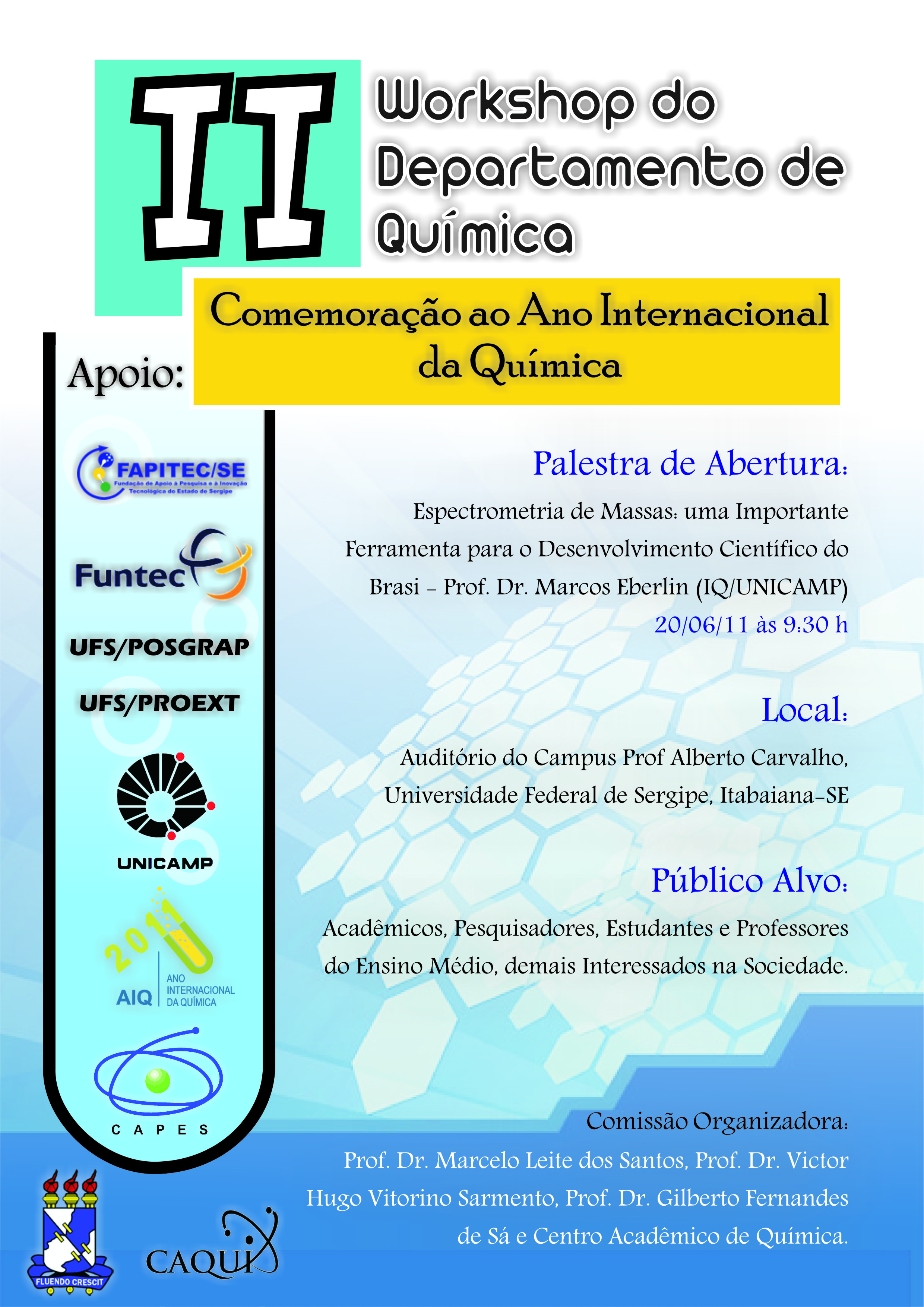 20-06-2011 22:26Segunda feira dia 20 de junho ocorrerá o II Workshop do Departamento de Química com a